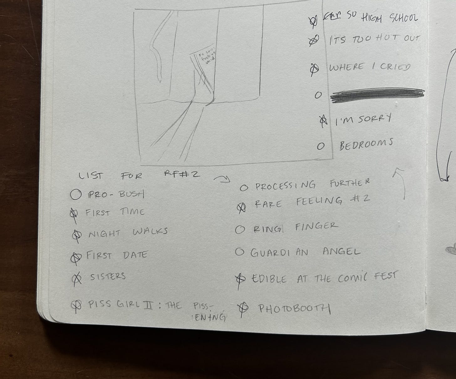 I am already inspired for Rare Feeling #2 and have planned out 10+ comics for it. A bit more direct and vulnerable than RF #1. My plan is to jump back into sharing my process here.